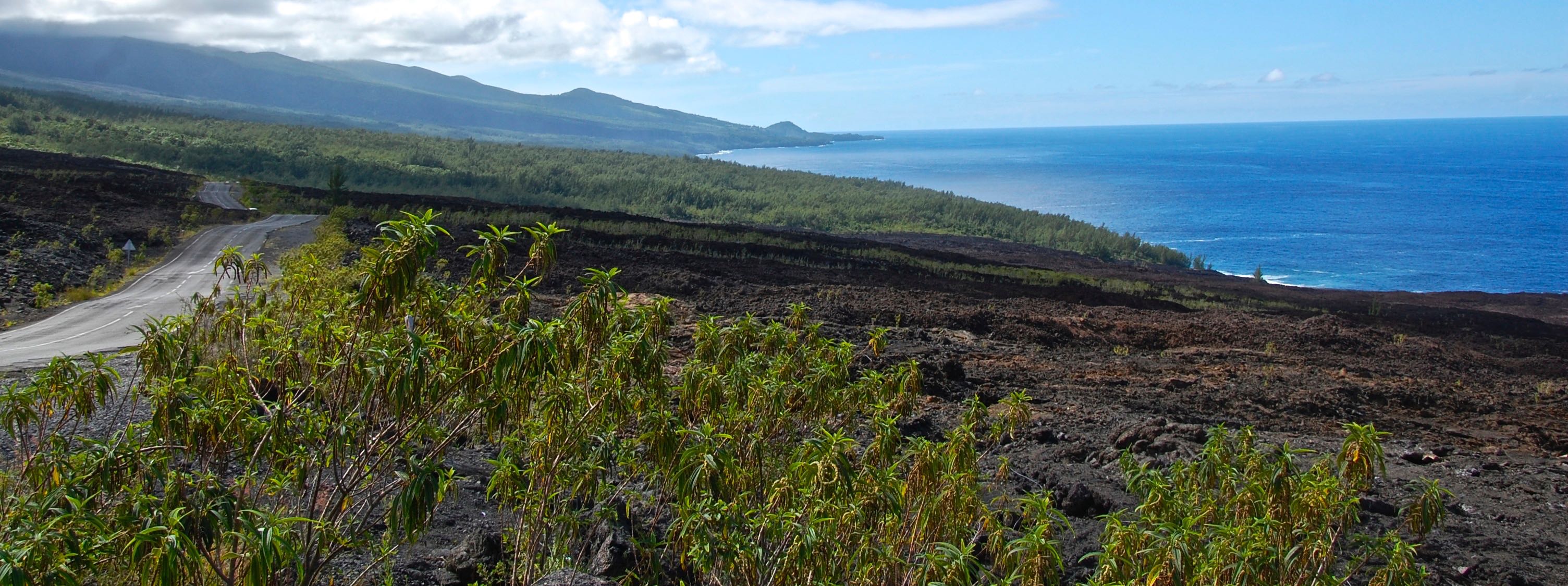 In this essentially mineral world, you will walk on a special type of lava called « in draperies » or « in graton ». You’ll reach the rim of the crater “Dolomieu”, real heart of the volcanic activity of the Piton de la Fournaise. The only plants that survive are few “bruyères” with yellow flowers and lichens. In good weather, the smell of sulfur reinforces the mineral atmosphere. Surprising and spectacular lunar landscape. Picnic provided on site.