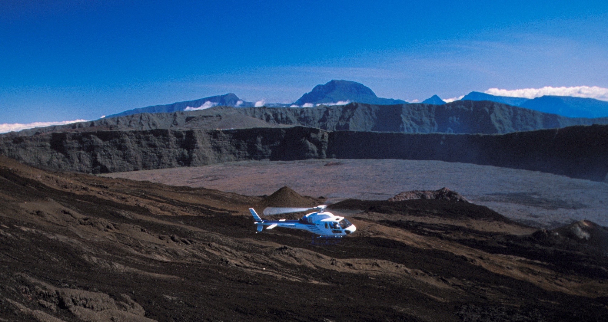Take off in direction of the cirque of Mafate, the only cirque unreachable by car. Crossing over the cirque toward Salazie. Stop in front of the «Voile de la Mariée» and entering the «Trou de Fer» by the «Bras des cavernes».  This 600 meters deep crack where a river runs throw it offers sensational feelings. Then, we will reach the volcano area by flying over the forests of the Plaine des Palmistes. Large loop in the enclosure of the volcano up to the top of the last craters.  Then, over flight of the Plaine des Cafres before getting inside of the cirque of Cilaos. On your way back, stop above the Piton Maido, and landing on the heliport and transfer to your hotel.